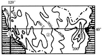 参考答案:(1)从等高线分布图上看,西部地区多为海拔高于500m的地区,因此以高原和山地为主。东部为大于200m的闭合区,为低矮的山地;中部则是小于200m的平原或海拔在200~500m的斜缓平原(答对任意两点即可)。因此,40°纬线穿过的地区地形地势特征是:地势东西两侧高,中间低;西部为高大的山地或高原,中部为大平原,东部为低矮山地。