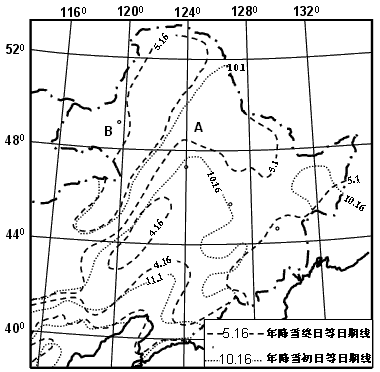 1、单选题 下图是中国东北地区年降雪初期及终期分布图,读图完成1—2题。