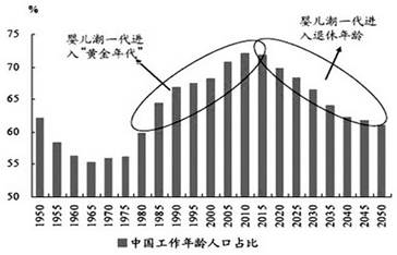 2、单选题  读“中国工作年龄人口占比图”,回答下题。