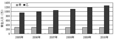 1、单选题  读“2005~2010年广东省某两市常住人口统计图”。据图推测