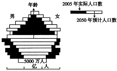 4、单选题 读我国2005年——2050年人口变化图,完成下列各题