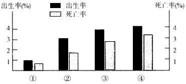 2、上图表示四个地区人口的出生率和死亡率,其中人口自然增长特点与甲城市相似的地区是