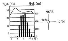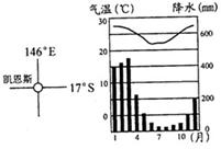 3、单选题 下图是仰光和凯恩斯位置与气候资料图,读图回答下列问题。