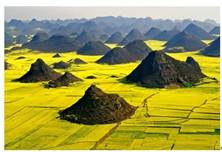 2、单选题 下图为云南省罗平县著名旅游景观“金鸡峰丛与油菜花海”照片。读图,回答题。