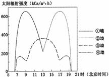 4、单选题 该图示意北半球低纬度某地某日(晴天)建筑东、南、西、北各墙面太阳辐射强度值的差异。读图完成问题。
