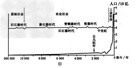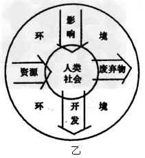 (1)甲图所示三种社会形态中,哪些属于乙图所示人地关系原理的范畴?