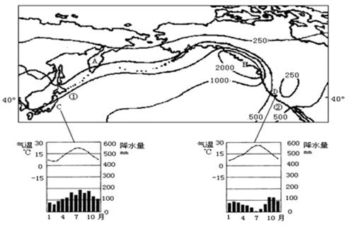 1、综合题 (15分)读世界局部区域年降水量分布图,回答下列问题。