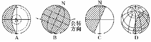 (2)下列日照图(阴影部分表示黑夜)所示日期与图甲一致的有________。(1分)