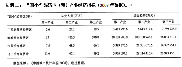 (2)“四小”经济区中综合经济实力最高的是________________区,该经济区二、三产业发展快速的原因是?(8分)