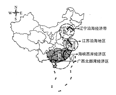 3、综合题 我国沿海地区经济发展和开发开放形成“三大四小”格局。“三大”是指珠三角、长三角和环渤海,“四小”是指北部湾、海峡西岸、江苏沿海和辽宁沿海。“三大”在改革开放后率先发展,是中国经济最发达地区;“四小”经济发展程度和“三大”相比还有一定差距,有望成为中国经济新的发动机。