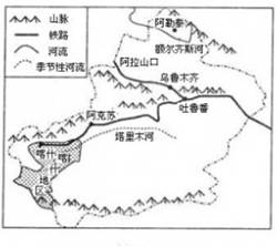 4、综合题 新疆是我国西部开发的重要阵地,是我国面积最大的省级行政区,读图结合所学知识回答下列问题。(7分)