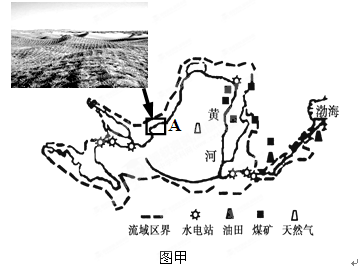 (3)图中方框A为宁夏中卫县沙坡头地区,利用麦草、稻草、芦苇等材料扎设方格状沙障(如图甲所示),治沙效果非常理想。简述草方格沙障在固沙方面的作用。(2分)