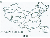 2、单选题 图为我国三大自然区分布简图,读图完成问题。