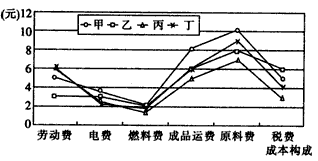 5、单选题 某地政府拟开办一家工厂,在选定的甲、乙、丙、丁四地的成本比较如下图。读图,回答1—2题。