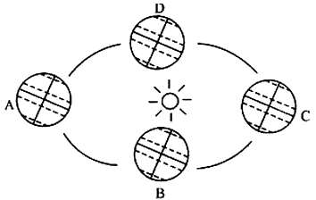 2、单选题 读图“地球二分二至日示意图”。当地球公转由D向A运动的过程中,我国出现的文化现象是( )