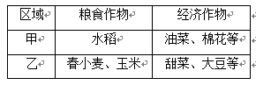 (1)比较甲、乙两区域中的平原地区优势农产品存在差异的原因。(8分)