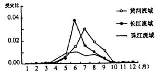 3、单选题 图为我国三个流域“水灾受灾比(受水灾的县城个数与总县城个数的比值)多年平均的月变化图”。回答28—29题。