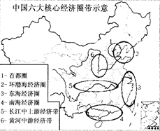 小题1:关于“六大核心经济圈带”分布叙述正确的是