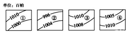 1、单选题 四幅等压线分布图中(比例尺相同),①②③④四地风力由大到小排序正确的是( )