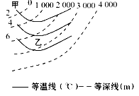 【小题2】从表层年平均温度可知,图示洋流是位于亚洲中高纬度的大陆东岸的寒冷,所以为千岛寒流。
