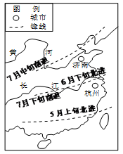 考点:锋面雨带的移动规律与我国的旱涝分布情况,气候对花期的影响。