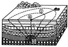 2、读地震构造示意图,图中①、②、③、④位于震源的是