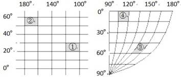 2.根据两图的经纬度跨度,③④所在图示跨经纬度较大,且纬度越低,纬线越长,故判断④地的实际面积最大。