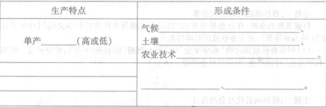 2、综合题 随着农业生产区位条件的变化,农业生产的空间分布发生了深刻改变。分析材料,回答下列问题。