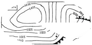 2、单选题 下列区域中,近地面风向与等压线的交角最小的是( )