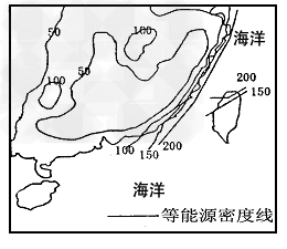 5、单选题 读我国东南沿海等能源密度线分布图,该类能源最有可能是: