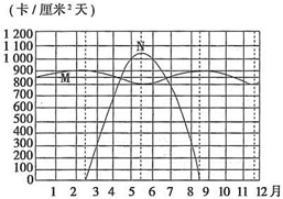 4、单选题 该图是M、N两地太阳辐射的年变化示意图。回答以下问题。
