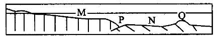 小题1:海底石油是埋藏于海洋底层以下的沉积岩及基岩中的矿产资源之一,一般位于大陆架处。图中M、N、P、Q四处M处于大陆架处,所以海底石油一般分布在 M处 。故选A。