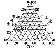 本题解析:本题考查读图分析能力。从图中能看出,Ⅰ组国家服务业所占比重超过50%,而Ⅱ组国家农业所占比重超过 60%,根据不同生产力水平国家的发展现状,可判断,Ⅰ组国家是发达国家,Ⅱ组国家是发展中国家。