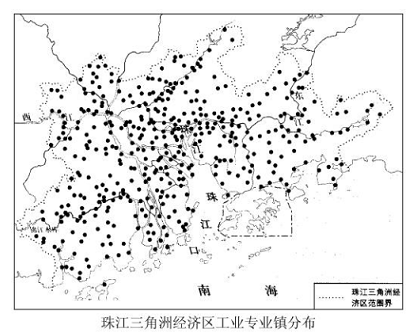 3、单选题  读珠江三角洲经济区工业专业镇分布图,回答下面题。