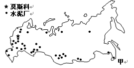 1.从水泥厂分布情况,可推测俄罗斯2.以下不属于甲水泥厂区位优势的是
