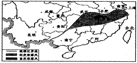 1、单选题  每年秋季“寒露”节气前后,是南方剔透抽穗扬花的关键时期,这时如遇低温危害,就会造成空壳、瘪粒,导致减产,通常称为“寒露风”。读 “2011年9月19—22日南方晚稻区寒露风预报图”,完成下列各题