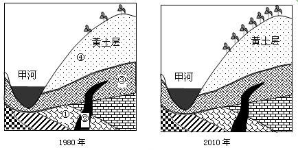 5、单选题  图为“甲河流域(局部)地质剖面及植被变化示意图”。读图完成下列小题。