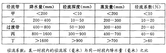 2、单选题  表为中国径流带主要特征值。回答16~17题。