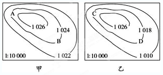 3、单选题 读下面两幅等压线图,A、B、C、D四地风力最小的是