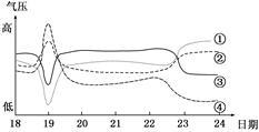 小题1:19日,登陆后的台风中心经过了我国南方某地,继而在23日该地又迎来冷空气过境。上图四条曲线中,能正确反映从18日到24日该地气压变化特点的是? ( )