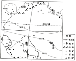 5、综合题 下图为亚洲局部地区某日某时海平面等压线分布图。读图回答问题:(10分)