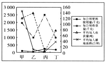 4、单选题 下图为四个国家在某年中的粮食作物生产的统计表,据图回答1—2题。