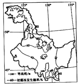 1、综合题 下图示意黑龙江省水稻初霜冻发生概率分布图,读图回答下列问题。