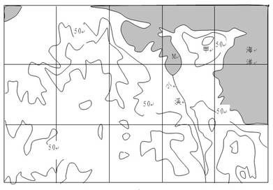 1.与本区域沿海的其他位置相比,渔港M的区位优势是2.若在甲处建一储运仓库,需将所在小山头沿50米等高线铲平,平整后的土地面积约为