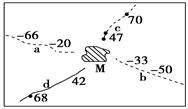 3、单选题 某市某中学开展地理观测活动,该图中各点是a、b、c、d四小组以村庄M为基点的实测相对高度,单位为米。据此回答问题。