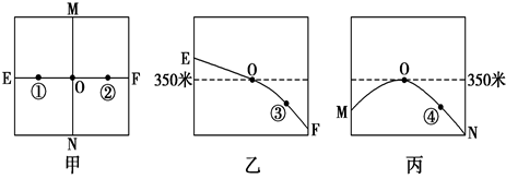 5、单选题 某中学地理兴趣学习小组在老师指导下沿甲图E~F、M~N作地形剖面图,成果分别为乙图和丙图。回答题。