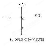 1、单选题 在下图中,赤道上P点与经线上Q点的正午太阳高度相等,P点位于O点以西,弧OP与OQ相等。完成下题。