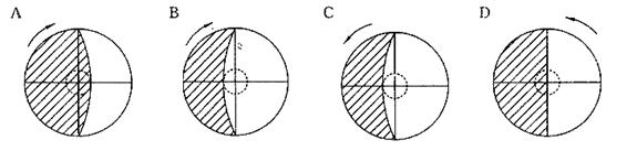 4、单选题 下图中,正确表示12月22日昼夜分布状况的是(图中箭头表示地球自转方向,阴影表示夜半球)
