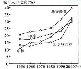 5、单选题 读图8“亚洲四个国家城市化的进程图”,回答31~33题。