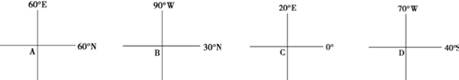 3、单选题 该图为世界四个地点的坐标,据此分析并回答1~2题。,